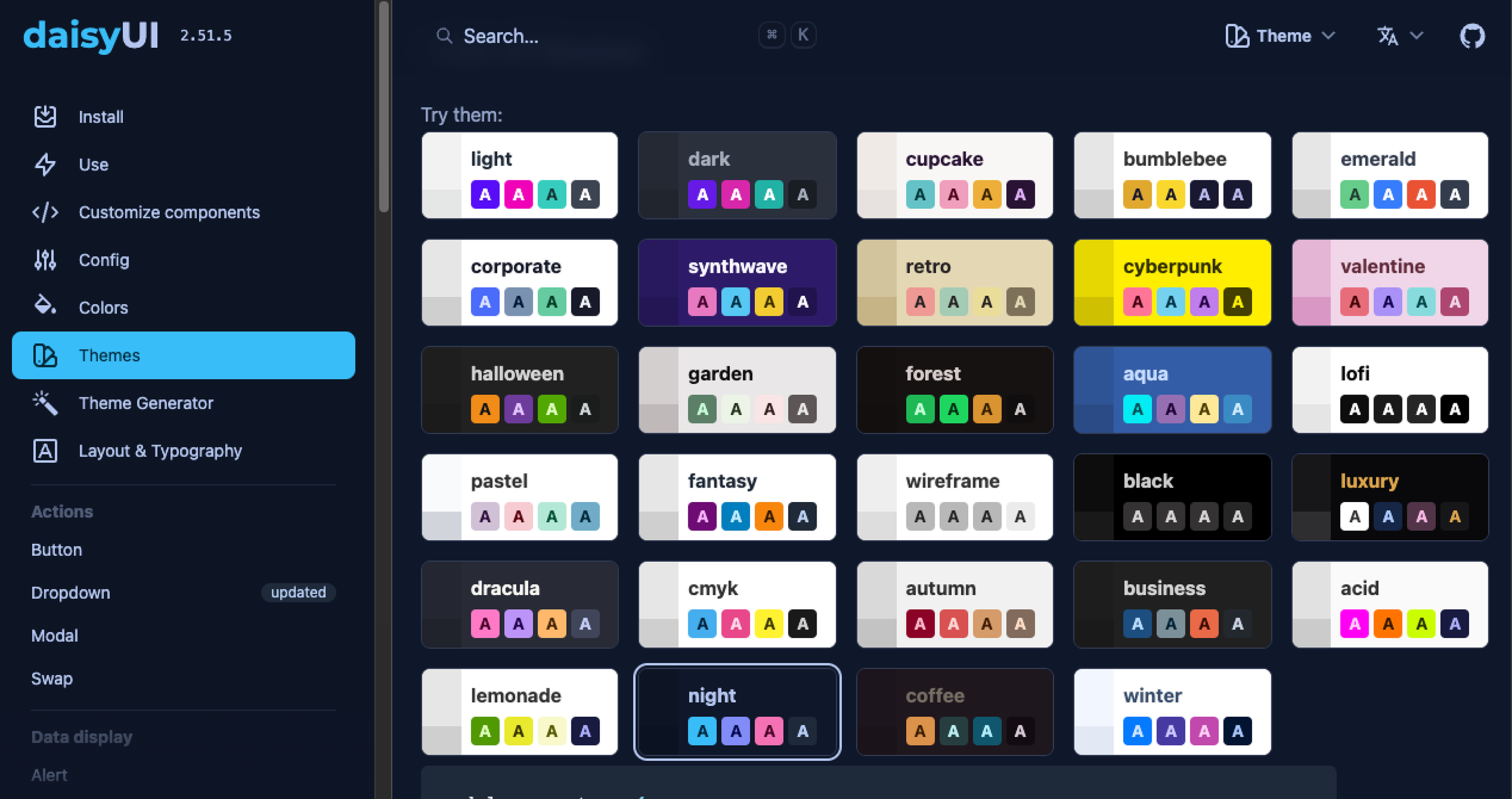 I began applying the DaisyUI night theme components to establish a consistent visual foundation for the product.