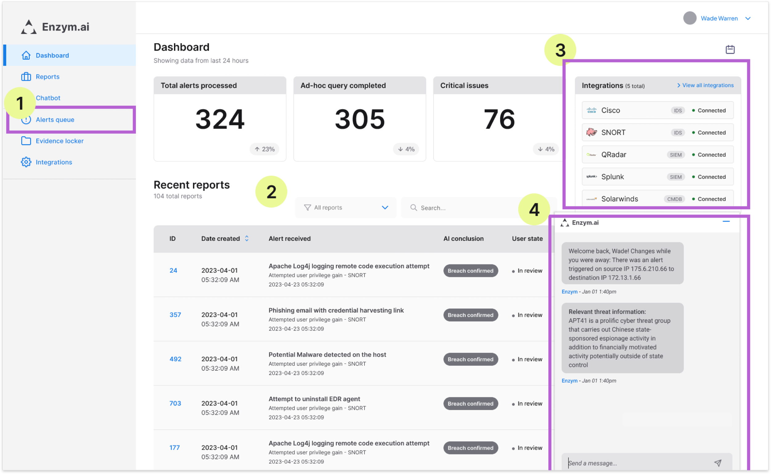 A dedicated space where analysts can interact with the AI agent, request updates, and explore findings in a more flexible, conversational way.Integrations