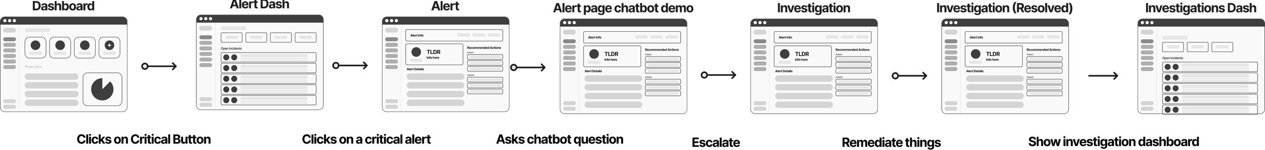 I started by mapping a user flow to define how a SOC analyst would navigate the product and complete key tasks. This helped identify critical touchpoints and core screens, ensuring the experience supported efficient investigation and decision-making.